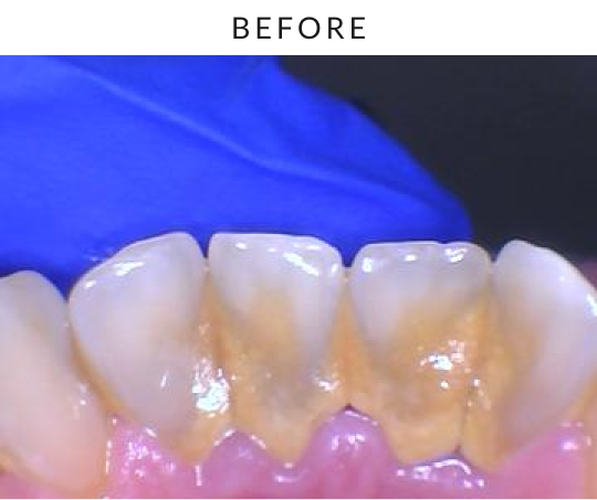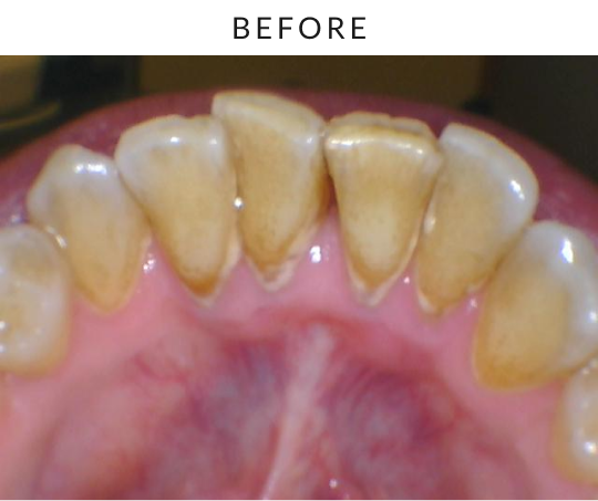 This patient presented with visible plaque and calculus buildup. A comprehensive cleaning was performed to remove the deposits and support healthier gums and a cleaner overall smile.