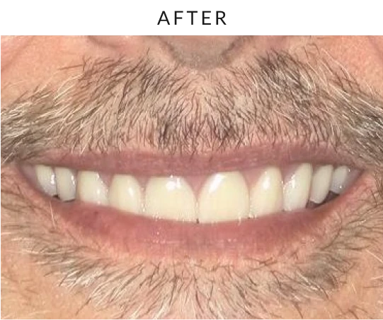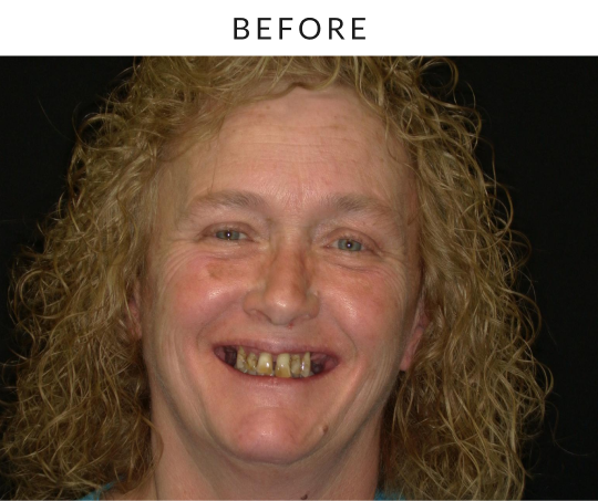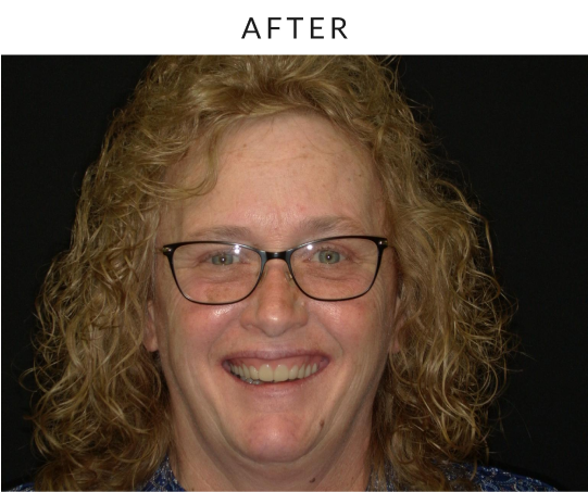 This patient was experiencing severe tooth loss and discoloration. With custom full dentures, we restored her smile, function, and confidence giving her a natural, comfortable result she loves.