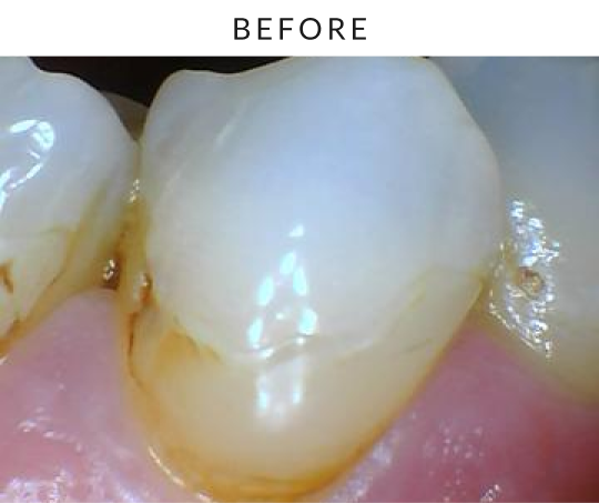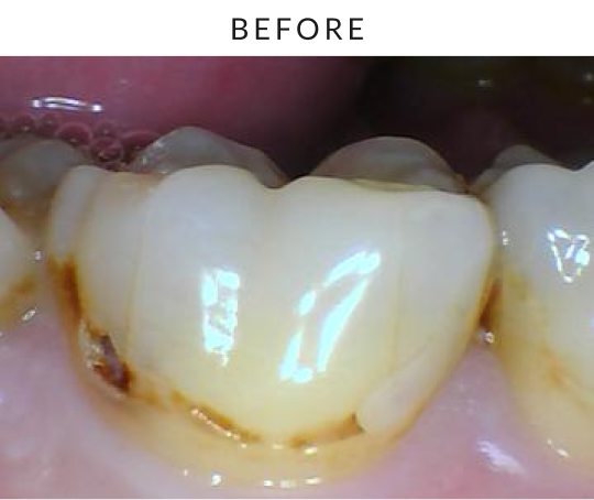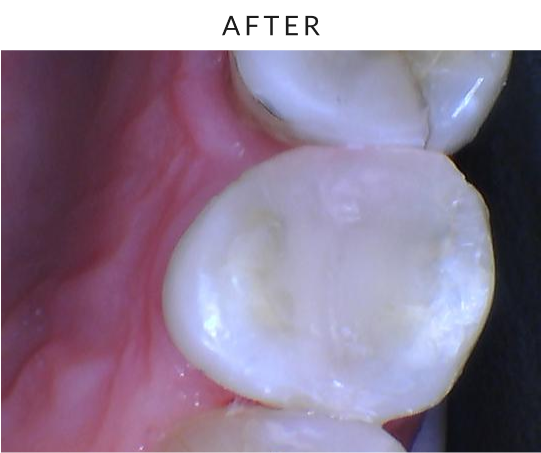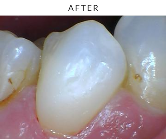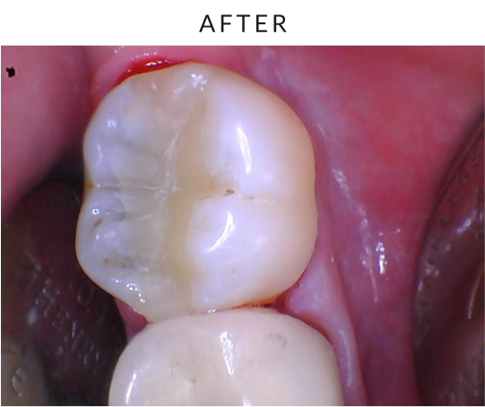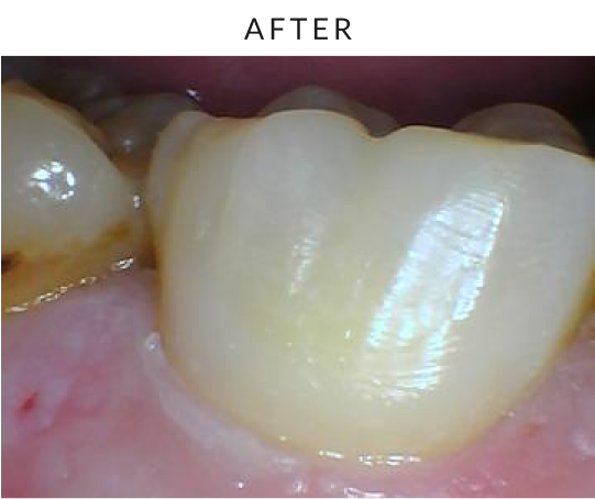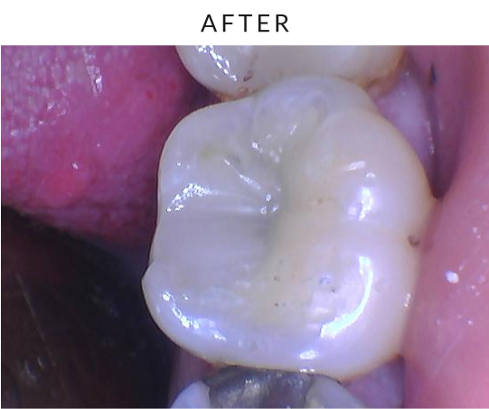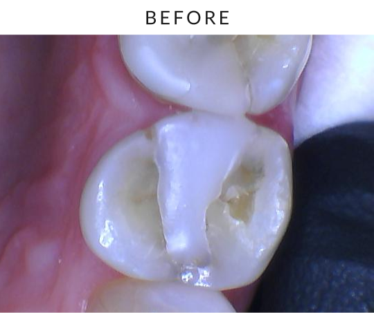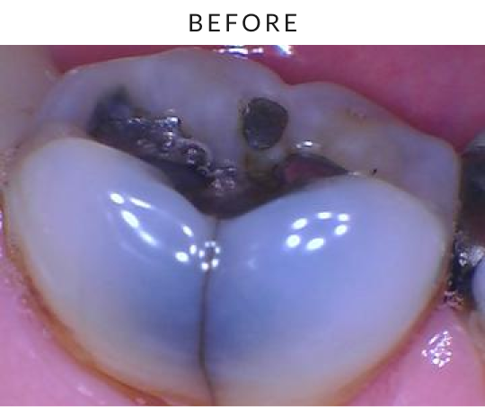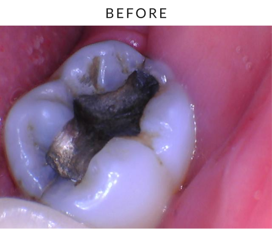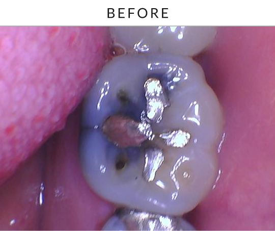 We removed an old amalgam filling that had recurrent decay underneath and replaced it with a tooth-colored composite restoring the tooth’s health and natural appearance.