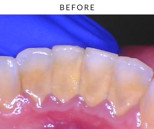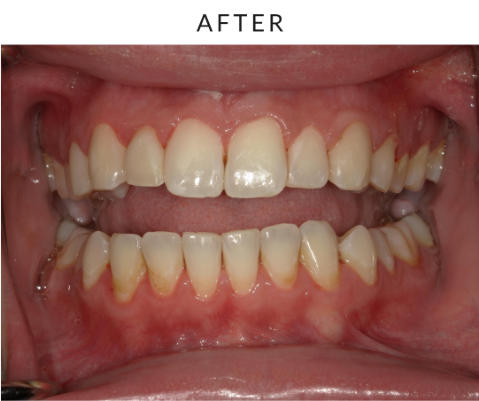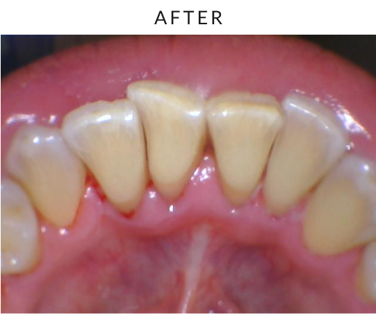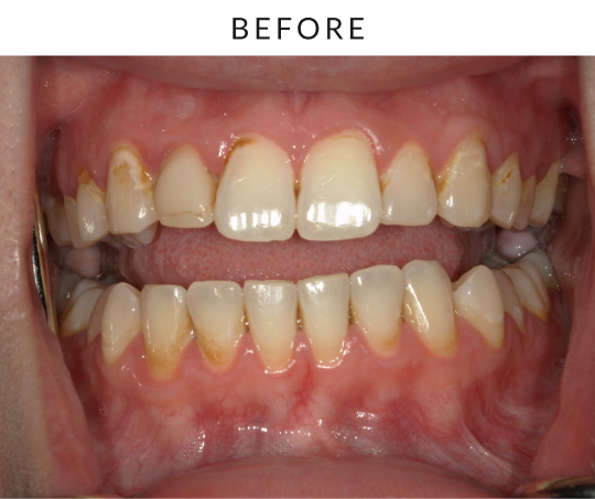 This patient had moderate buildup and staining along with inflamed gums. We performed a detailed cleaning to remove plaque and calculus, helping reduce inflammation and improve overall oral health.