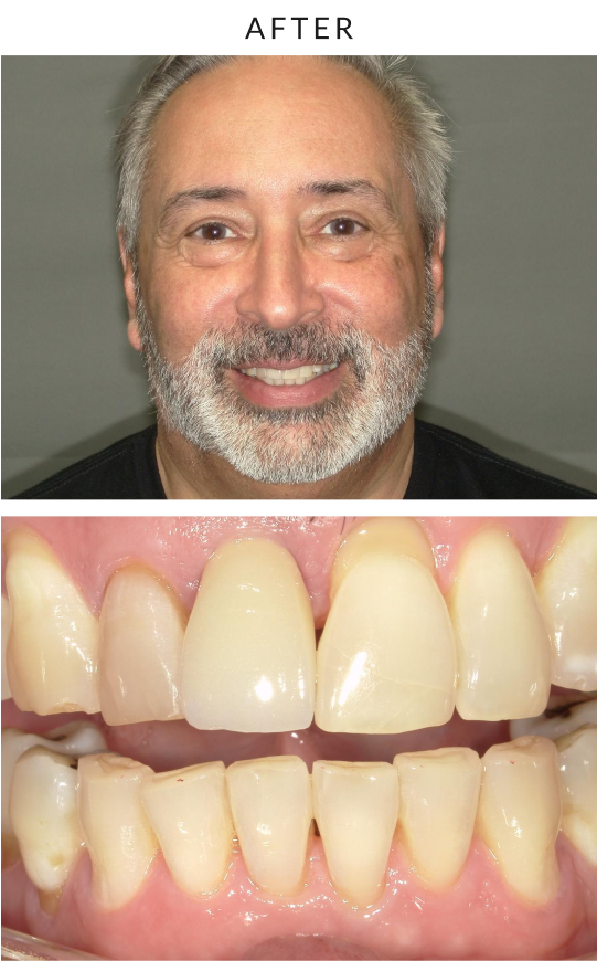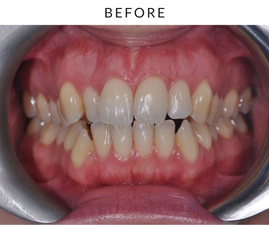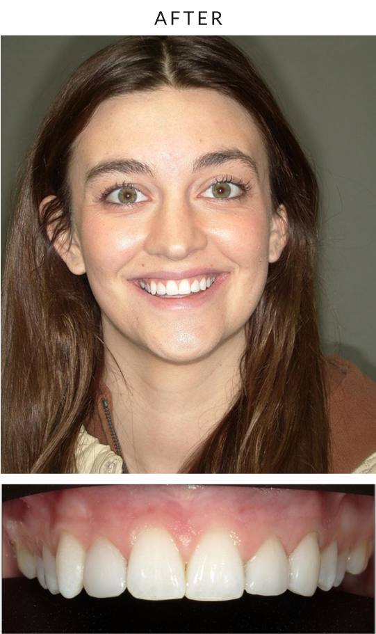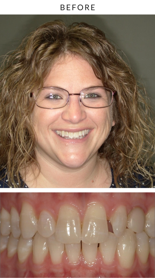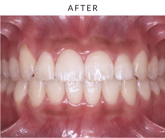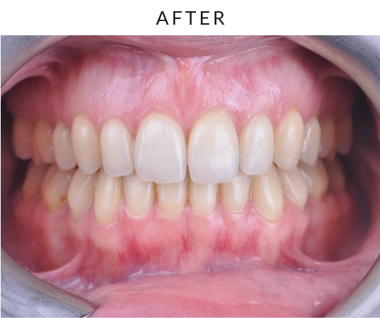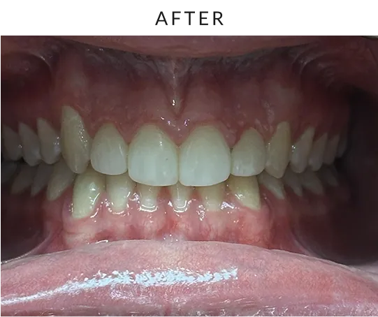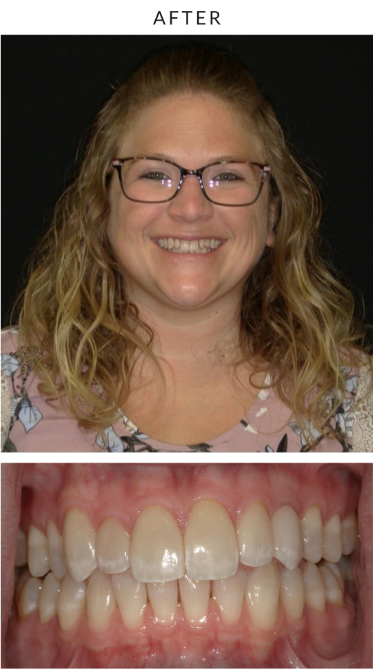 We first aligned this patient’s teeth with Invisalign, then used composite veneers to refine the shape and enhance the overall appearance resulting in a straighter, more polished smile.