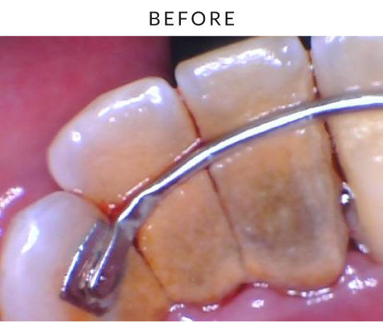 This patient had significant calculus buildup around a lower lingual retainer. With a thorough scaling and root planing (SRP), we removed the hardened deposits and restored a healthier foundation for the gums and teeth.