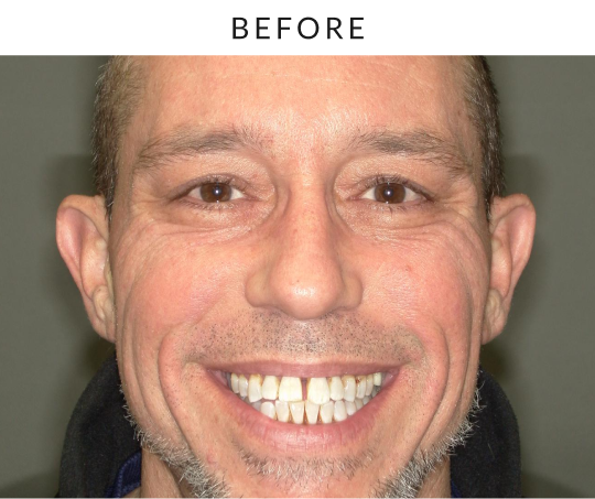 We placed composite veneers to close the gap between the front teeth, creating a more balanced and confident smile all in a single visit.